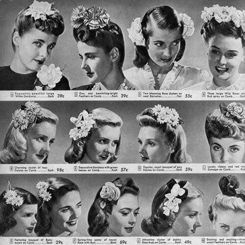 Now that you know what you need, let’s talk about how to do it. In general, most 1940s hairstyles will follow what’s called a setting pattern. This means the way in which you arrange your curlers on your head. Different ways of rolling your hair, the number of rows you do, where you place curlers, and the direction you roll them, will all affect how the finished curls look. Some setting patterns are very complicated and can be a little overwhelming. Here are some examples from the time period: